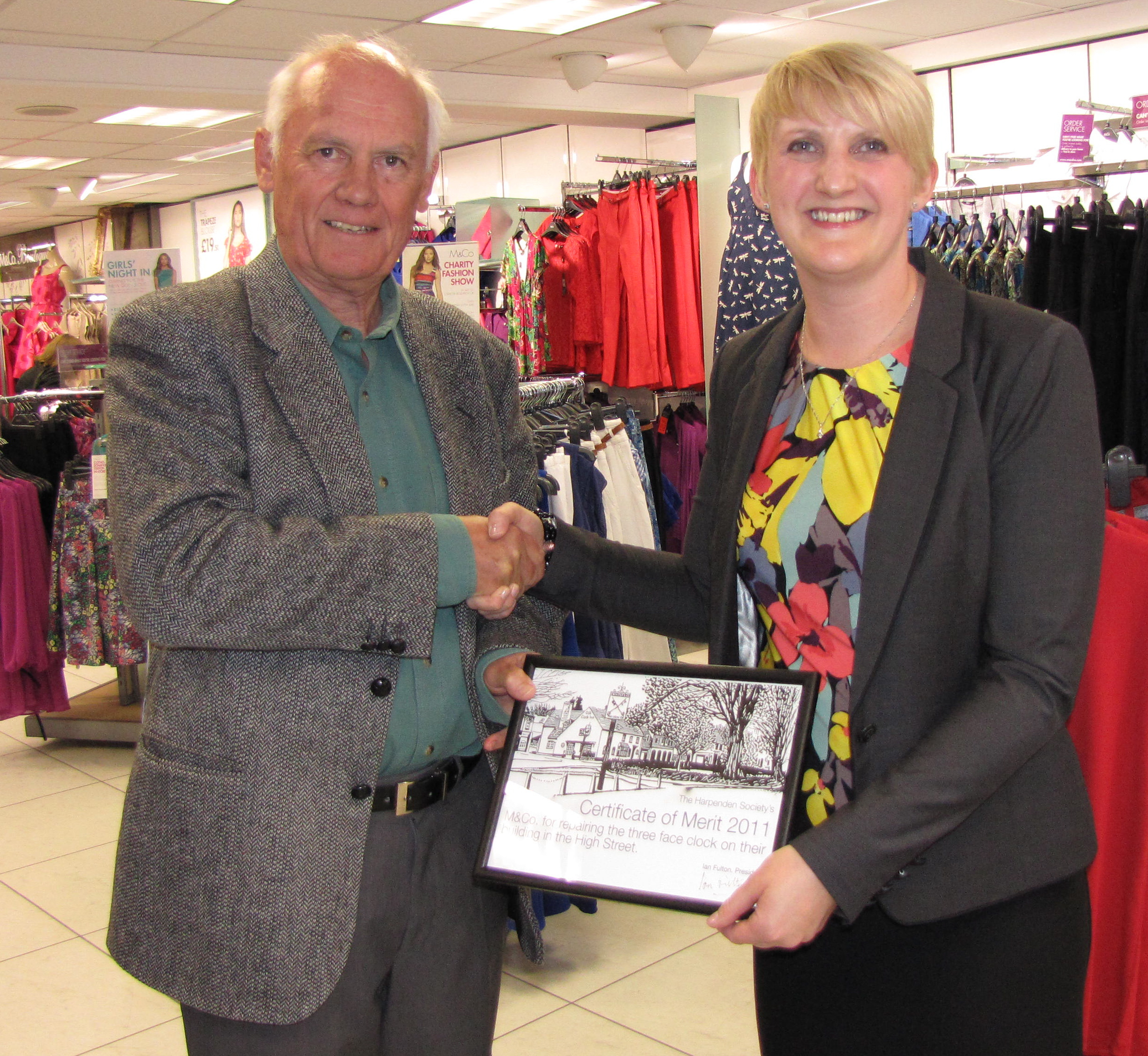 The Harpenden Society presented the annual “Harpenden Society Award” to the new development in Thompson's Close in Harpenden comprising Breathing Space fitness club and Blueberry Café. Chris Marsden presented the award on Wednesday 13th July 2011 to Keith Lunn the owner of the businesses; Chris explained that the awards are presented for developments which enhance the environment.