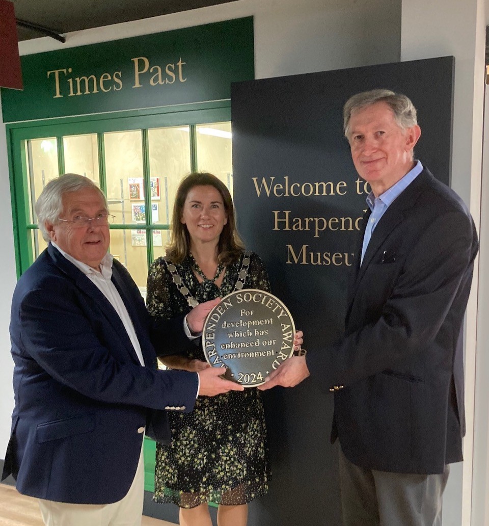 The Harpenden Society awarded its Prestigious Plaque to the Harpenden & District Local History Society for the Harpenden Museum which opened at the Eric Morecambe Centre early 2024