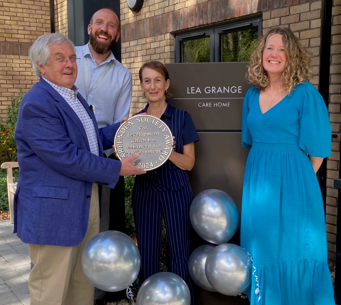 The Plaque was presented to Care Home Manager Teresa Torres by Jeff Phillips. Society Chair on August 28. Also present at the ceremony were regional director, Matthew Anstee-Brown and Harpenden’s deputy Town Mayor Kirsti Wenn.