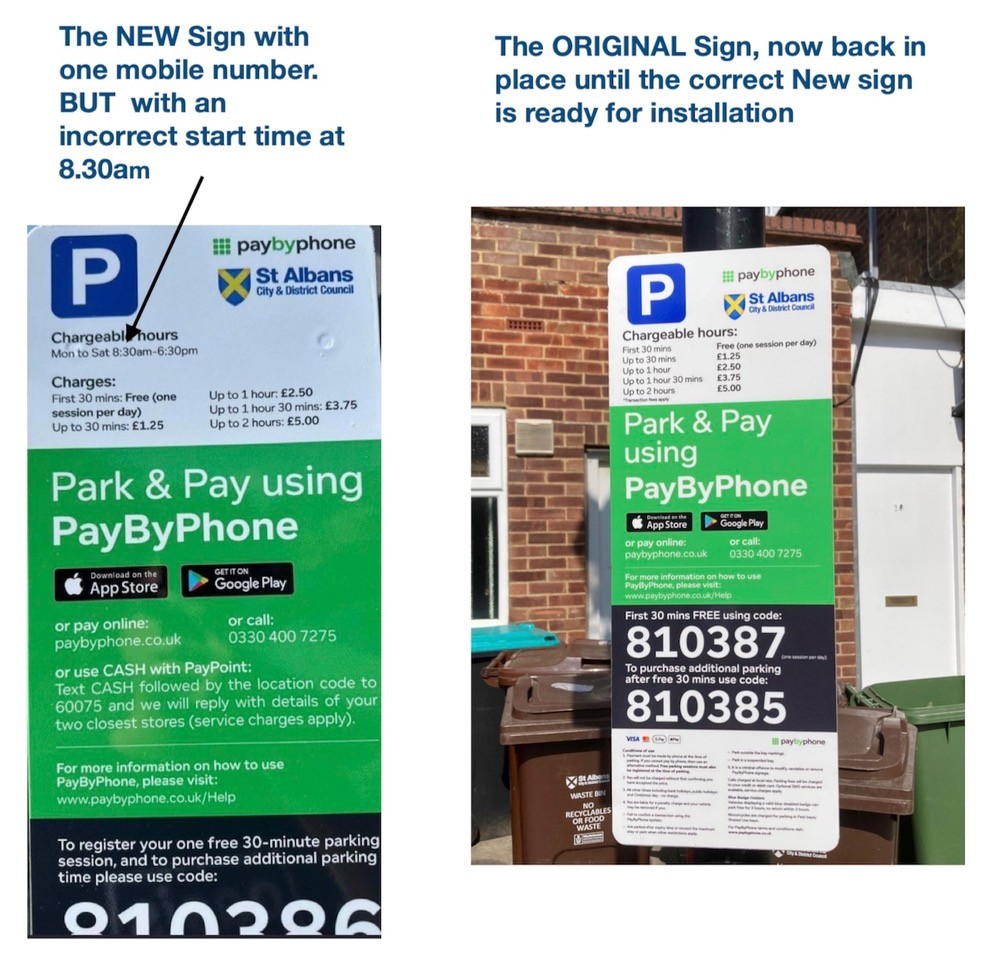 In the meantime, customers in Harpenden should continue using the two code system. Users will be able to input one code on their mobile phone instead of two to obtain both the free half-hour parking and to pay for additional time. The new signs highlight this change.