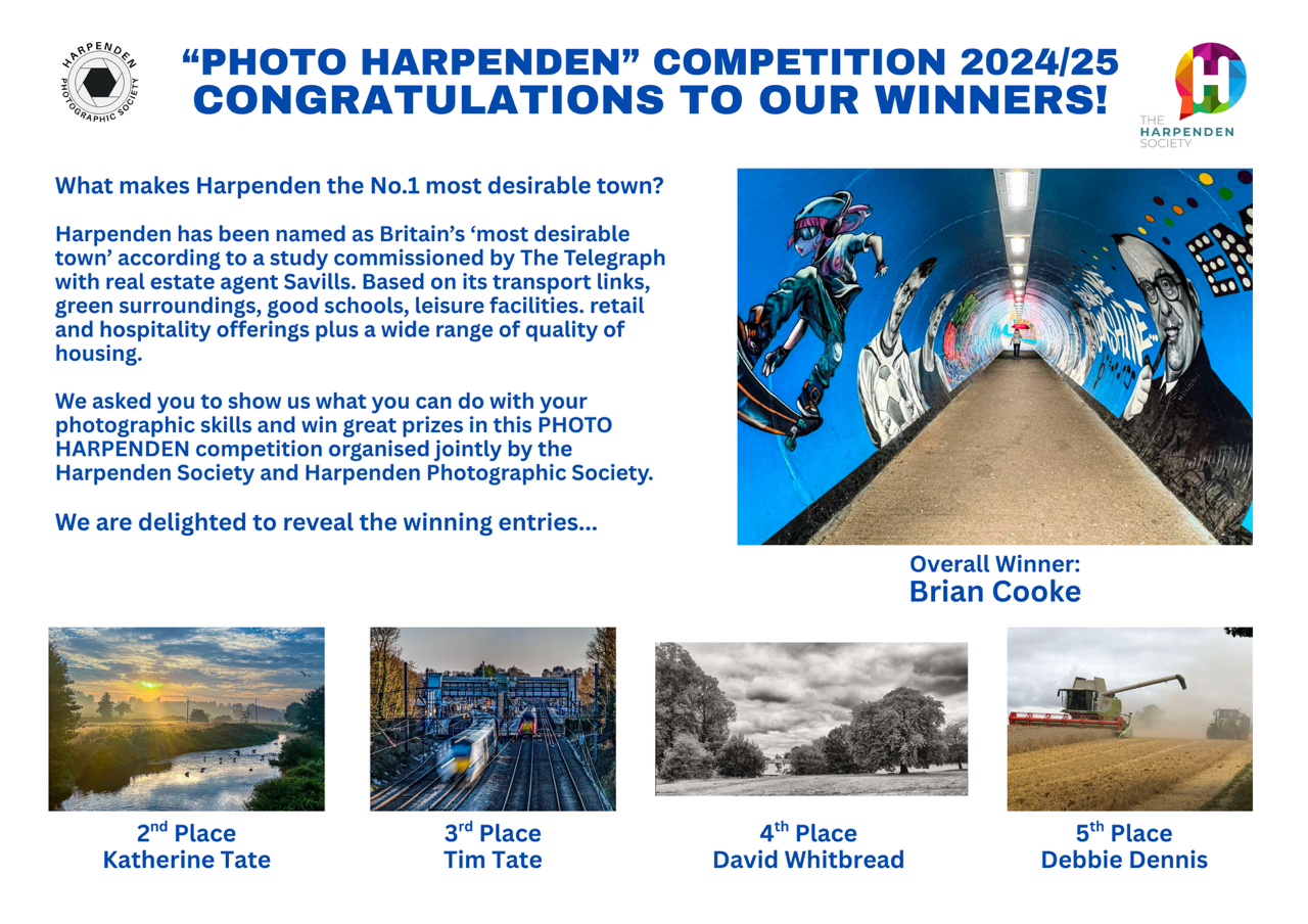 The winners all received Waterstones gift tokens and free membership of the Harpenden Society PLUS being part of the Harpenden Society photo library where their images could be used on future promotional material.