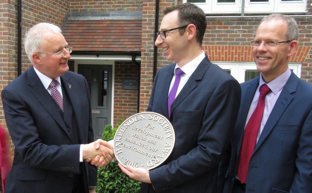 The ‘2016 Harpenden Society Plaque' was awarded to Stonehurst Court, the apartment block at Southdown, immediately adjacent to the Harpenden Trust Centre, on the site of the former (long derelict) Rose & Crown pub. Martin Brown, sales manager of Shanly Homes, the developer, received the Award from Penny Ayres, chairman of the Awards Committee at the Society's AGM in April 2017. She said the new building had outstanding and imaginative architectural merit, with its corner ‘turret' feature and differing roof levels, while helping to provide much-needed compact apartment housing.