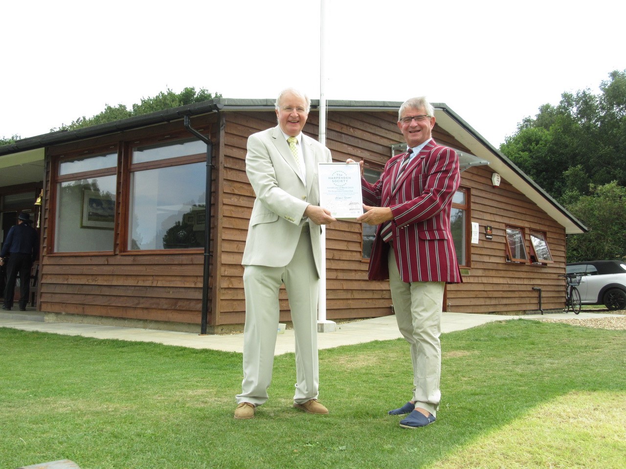 Also a Certificate of Merit to the Harpenden Cricket Club for the newly refurbished pavilion which enhances the already lovely view of the cricket being played on Harpenden Common .